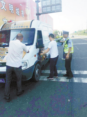 7月23日9时许,市交警支队民警王武、张建斌在商周高速周口北站口检查时,发现一辆车被广告“全覆盖”。他们立即拦停该车,并上网核对车辆登记证书和行车证,发现该车没有进行车身广告登记和变更。驾驶员称不知道车身贴广告还要到相关部门进行登记备案,更不知道这一行为涉嫌违法。他表示,已认识到错误,会立即改正。随后,民警和驾驶员一起清除了车身广告。