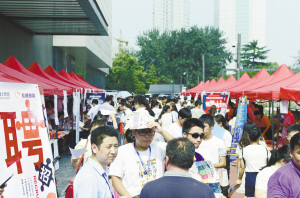当日,河南省郑州市举行夏季就业毕业生户外大型招聘会。尽管市区温度约37摄氏度,近8000个工作岗位还是吸引众多应届毕业生前来应聘。本次招聘会就业岗位涉及制造业、房地产、金融等行业。新华社记者 冯大鹏 摄