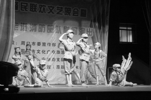 7月29日,周口市文化馆举行庆“八一”2016周末公益剧场走进周口市公安消防支队慰问演出。此次演出紧贴军营特点和时代风味,内容涵盖舞蹈、曲艺、杂技等多种形式,唱响了“军民一家、共建美好家园”的主旋律。晚报记者 王晨 摄 线索提供 刘振宇