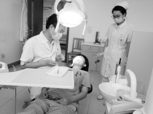 当日正值盛夏,室外艳阳高照,气温不断攀升,但记者一行走进中国医科大学航空总医院口腔诊疗中心却另有一番感受。可能是空调的缘故,这里温度适中,四周白色的墙壁,在暖色调灯光的照射下,为人们营造出一种舒适的感觉。为一名牙病患者进行治疗后,穿着白色大褂,中等身材的赵强推门进入办公室。赵强顾不上休息,就接受了记者采访。