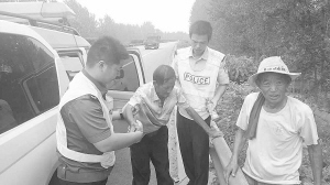 接到报警后,民警高峰、赵永飞火速驱车赶往现场。当他们巡查到宁洛高速427公里处时,发现一位年迈力衰的老人正在高速上行走。经询问,老人是误入高速的,对行人禁行高速公路的规定全然不知。