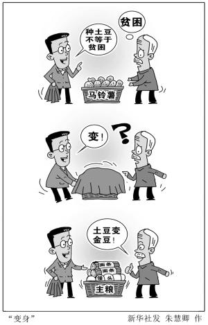统计显示,中国马铃薯生产地与贫困地区分布高度重合。全国592个贫困县中有549个以马铃薯为主要作物。借助国家的马铃薯主粮化战略,一个以政府扶持引导、市场积极跟进,化“薯”为“粮”,使“土豆变金豆”的马铃薯精准扶贫新格局正在形成。