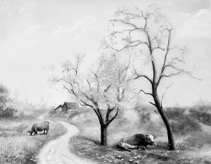 后来,我的母亲抱着弟弟从地里回来,她并没有责备我,我也没有为自己不当的行为认错。但令我惊奇的是,同样没有出过村子的弟弟竟然准确地选择了母亲所去的方向,也许冥冥之中自有定数。从这以后,我才知道,村子往东往西的路是通向田野的,往北的路一直通往县城。