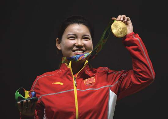 张梦雪 为中国队 摘得首金 8月7日,张梦雪在颁奖仪式上展示金牌。 当日,在2016年里约奥运会射击女子10米气手枪决赛中,中国选手张梦雪以199.4环的成绩夺得金牌,为中国代表团摘得本届奥运会首金。 新华社记者 韩瑜庆 摄