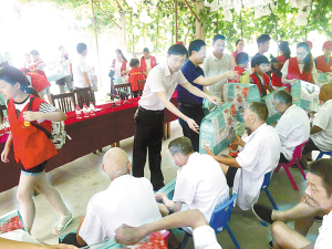 据悉,周口北斗达英语学校近年来在做好教学本职工作的同时,积极组织开展社会各类公益活动,不忘承担社会责任,受到了社会各界的好评。图为校长单启航为老人们分发夏凉被。