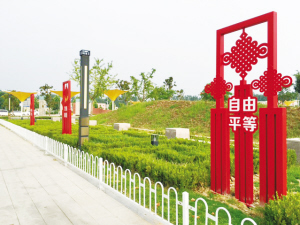 近日,在周口火车站广场,周口晚报记者发现6个以弘扬社会主义核心价值观为主题的红色中国结公益广告牌格外引人注目。据悉,这些公益广告牌由市经济开发区城管局设计投资兴建,目的是让来此的游客和市民在欣赏美景的同时,充分了解社会主义核心价值观的基本内容。晚报记者 彭慧 摄