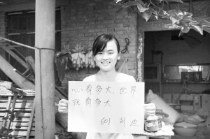 刘迪说,如果没有圆梦行动,家里就要借钱了。她希望自己在大学里能多拿奖学金,将来考上研究生,学业有成后回报社会。