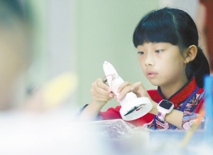 8月14日,湖北省来凤县的小朋友在天津青少年活动中心制作水陆两栖赛车。