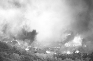 8月17日,美国加利福尼亚州圣伯纳迪奥县的国家森林公园火势凶猛。