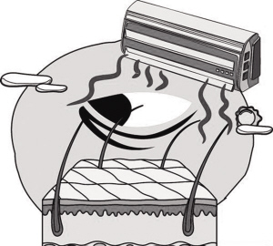 专家还表示,吹空调导致损伤皮肤,不一定在一两天内就能发现,皮肤出问题是一个逐渐累积的过程。专家表示,长时间(2~3小时)连续吹空调,会带走人体皮肤表面的水分,造成皮肤干燥,严重的甚至造成皮肤脱水。干燥的皮肤不仅外观干涩黯哑,而且缺乏抵抗力,容易被晒黑或感染皮疹类疾病,干燥、瘙痒、脱屑、过敏等不适症状时就是信号。