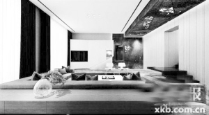 咖啡色的沙发布、胡桃木色的柜子和墙面、黑色大理石楼梯以及铁灰色的瓷砖,即使是统一的咖啡色的深色主调,层次上的错落有致,仍不落俗套。