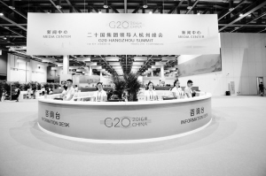 9月1日拍摄的G20峰会新闻中心咨询台。