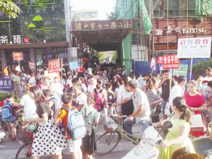 7时30分许,周口晚报记者在周口七一路二小门前看到,由于是开学第一天,大部分家长都亲自送孩子到学校。送子车流与上班车流会合,学校周边道路交通十分拥堵,交警忙着疏导交通。
