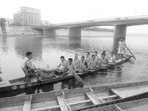 9月6日上午,周口晚报记者在沙颍河中州大道桥至八一大道桥河段看到,四五支参赛队伍正敲着战鼓、喊着号子,进行紧张的水上训练。