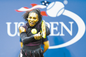 当地时间9月7日,小威在比赛中回球。当日,在美国纽约进行的2016美国网球公开赛女子单打四分之一决赛中,美国选手小威廉姆斯以2∶1战胜罗马尼亚选手哈勒普,晋级四强。