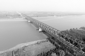 当日,由中铁十四局集团承建的黄(骅)大(家洼)铁路黄河特大桥主桥工程全部完工。大桥位于山东省利津县境内,距黄河入海口约110公里,主桥全长960米,为黄大铁路唯一的重难点控制性工程。黄大铁路北起河北黄骅、南至山东大家洼,计划于2017年9月建成通车。新华社记者 邢广利 摄