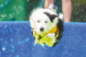 当地时间9月10日,斯洛文尼亚第二届狗跳水比赛在卡姆尼克举行,狗跳水比赛是一项测试狗能力的休闲体育项目。主人把一只玩具扔进水池中,狗跳入水中将其取回。以狗跳入水里的距离作为评判标准。