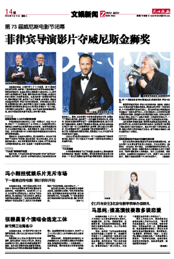 本报综合消息 北京时间9月11日凌晨,第73届威尼斯电影节闭幕,由萨姆·门德斯领衔的评审团将金狮奖颁给了菲律宾导演拉夫·达兹执导的小清新影片《离去的女人》。而评审团大奖则颁发给了汤姆·福特和他的《夜行动物》。这是这位时尚大帝第二次进军威尼斯,也是他的第一座国际电影节奖杯。最佳导演奖方面,威尼斯下出了双黄蛋,由安德烈·康查洛夫斯基和阿玛特·伊斯卡拉特共同获得。好莱坞著名女星艾玛·斯通则凭借口碑上佳的开幕片《爱乐之城》戴上影后桂冠。影帝则花落阿根廷电影《杰出公民》男主角奥斯卡·马丁内兹。中国导演王兵的纪录片《苦钱》在地平线单元获得最佳剧本奖,成为本届威尼斯电影节奖项上的华语片独苗。