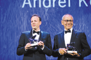 今年的最佳导演奖下出了双黄蛋,由赵薇与上届金狮奖得主导演洛伦佐·维加斯一起颁奖。两位获奖者的风格也是大相径庭,一个是文艺浪漫的《战争天堂》导演安德烈·康查洛夫斯基,另一个则是猎奇直率的《野蛮地区》导演阿玛特·伊斯卡拉特。