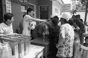 9月10日,在中秋佳节即将到来之际,市民政局筹集3万元资金,购买月饼、食用油、大米等生活用品,到郸城县城郊乡冷庄村慰问困难户,并分别为该村两名考上大学的困难大学生发放1000元救助款。晚报记者 张劲松 摄