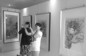 9月9日上午,170多件全国书画名家作品在周口中心城区八一大道南段开元新城明德翰墨美术馆展出,不少书画爱好者前来欣赏。晚报记者 张志新 摄