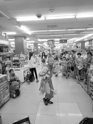 中秋节将至,我市一些商家开始制定优惠措施搞促销,营造节日气氛。图为一商家请来“猴哥”助兴。 晚报记者 马治卫 摄