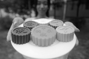 9月12日,一名学生展示通过3D打印机制作出来的“月饼”。