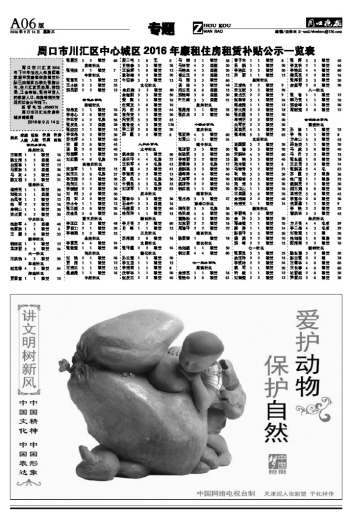 周口市川汇区中心城区2016年廉租住房租赁补贴公示一览表