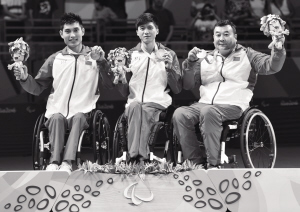 当日,在2016年里约残奥会乒乓球男子团体3级决赛中,中国队以2比1战胜德国队,获得冠军。新华社记者朱峥摄