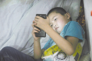 ◎由于无法与人交流,更多时候,袁凯旋都是一个人默默地玩手机