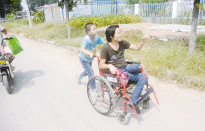 为了儿子,她离开商水县袁老乡的家,带着儿子来到周口市聋儿语训中心。为方便孩子学习,她在附近租了一间房,每天陪儿子上学、放学。“说是我陪儿子上课,不如说是儿子边照顾我边学习。”坐在轮椅上的孙秀华说,由于行动不便,每天都是儿子用轮椅推着她上学、放学。