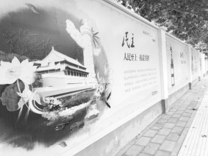 在大庆路与庆丰路交叉口的一处小区围墙上,一幅幅社会主义核心价值观公益宣传图画生动活泼、色彩鲜艳,给人一种强烈的视觉冲击感。市民李先生一边等车,一边欣赏,他告诉周口晚报记者,现在的公益广告越做越有味道,碰到一些有趣的故事或句子,他便会默记在心里。