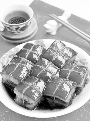 元丰三年,苏东坡贬谪湖北黄冈,当地猪多肉贱,东坡作《食猪肉诗》云:“黄州好猪肉,价贱等粪土。富者不肯吃,贫者不解煮。慢着火,少着水,火候足时他自美。每日起来打一碗,饱得自家君莫管。”元丰八年,苏东坡从黄州复出,但没过多久再遭排挤。元祐四年,苏东坡被调往杭州任太守,其间指挥民众疏浚西湖、修建湖堤,杭州百姓感其恩德,送来了猪肉和酒。苏东坡给厨工批了个条子“酒肉一起送”给那些修浚西湖的民工。结果,厨工粗心看成了“酒肉一起烧”,用美酒将猪肉烧得红香酥烂,香飘西湖,令人垂涎欲滴。经过几番锤炼发展,这道红烧肉终成正果,得到了“东坡肉”的美名。