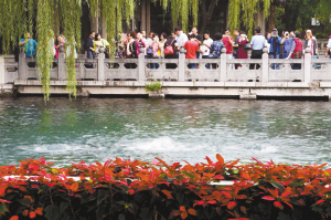 当日,被誉为“天下第一泉”的山东济南趵突泉地下水位达到29.17米,吸引众多游客前来观赏。据了解,自2003年9月6日复涌至今,趵突泉已实现“十三连喷”,创下近40年来泉水持续喷涌的最长纪录。新华社记者 郭绪雷 摄
