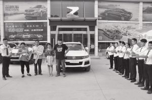 9月16日下午众泰汽车周口豫众4S店举办“团圆团购,礼惠中秋”众泰汽车中秋节团购会。图为活动交车仪式。(记者 戚团结 摄)