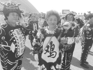 环保一直是市民关注的话题,在市三运会上,当来自淮阳县泥泥狗协会的会员们穿着用布头、塑料袋等废品制作的“泥泥狗”造型的连体服步入开幕式现场,全体观众都为之眼前一亮。周口晚报记者看到,这些会员身穿鸡、狗、牛、猴等“泥泥狗”造型的服装,头戴各种动物造型的头饰, 看起来十分有趣(如图)。