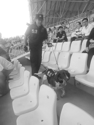 9月20日15时许,当大家都在为市三运会开幕式做最后的准备时,在民警的牵引下,4只摇着尾巴的警犬穿梭在看台上不停地嗅来嗅去(如图)。见此情景,不少观众一边为警犬让路,一边拿出手机拍照留影,4只警犬一时“风光无限”。