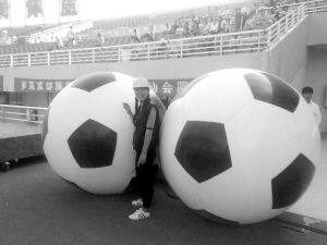 市三运会工作人员告诉周口晚报记者,这些大“足球”是用来装饰会场、烘托气氛用的,足球场两侧各摆放5个,他没想到这些“足球”竟会受到那么多人的喜爱。