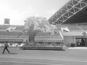 昨日14时20分许,在距离开幕式还有一个多小时的时间里,现场一棵高达5米的道具国槐(如图)赚足了眼球。