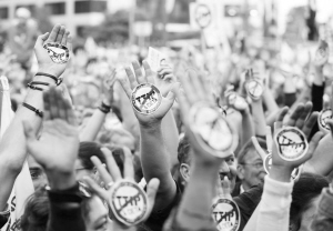 近万名欧洲民众20日在欧盟总部附近游行,抗议《跨大西洋贸易与投资伙伴关系协定》(TTIP)和《综合经济与贸易协定》(CETA)。新华社记者 叶平凡 摄