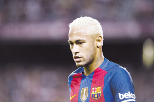 当地时间9月21日,巴塞罗那队球员内马尔在比赛中。当日,在2016/2017赛季西班牙足球甲级联赛第五轮比赛中,巴塞罗那队主场以1∶1战平马德里竞技队。