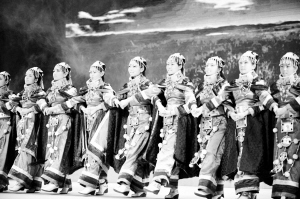 9月21日,西藏拉萨中学学生在庆典活动上表演舞蹈《古海神韵》。