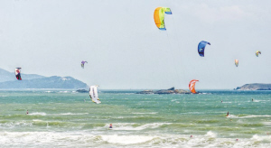 近日,第五届中国-平潭风筝冲浪节正在福建平潭举行。本届风筝冲浪节包括“沙洲优黄杯”世界风筝冲浪花式锦标赛及第二届全国风筝冲浪锦标赛,共有来自25个国家和地区的近百名风筝冲浪高手参与逐浪竞技。