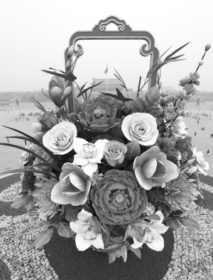 9月25日,天安门广场“祝福祖国” 中心花坛布置完毕。