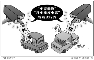 同时,交管部门还将依据道路交通法等相关规定,对“驾驶员驾驶时拨打接听手持电话”处罚款50元、记2分,“驾驶员向道路上抛洒物品”处罚款50元,“乘车人向车外抛洒物品”处罚款20元。