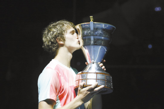 圣彼得堡网球公开赛 兹韦列夫夺冠 当地时间9月25日,兹韦列夫亲吻奖杯。当日,在圣彼得堡网球公开赛决赛中,德国选手兹韦列夫以2∶1战胜瑞士选手瓦林卡,夺得冠军。 新华社发