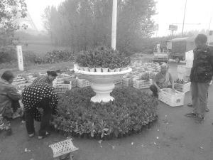 当日上午,小雨淅沥,周口晚报记者在市区五一文化广场、七一路与大庆路交叉口、七一路与周口大道交叉口等处看到,有的花坛已经摆放好,有的正在摆放。周口晚报记者注意到,园林工人用三轮车、平板车等运输工具把鸡冠花、万寿菊、孔雀草、一串红等10多种小盆花卉运来后,便开始精心摆放。园林工人把色彩鲜艳的鸡冠花摆在花坛中央,把万寿菊、孔雀草、一串红等带绿叶小盆花摆放四周,遥遥望去,花坛姹紫嫣红。据介绍,花坛分为3层,第一层是一个巨大的圆形,第二层是红绿搭配,第三层以红艳为主。