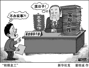 何谓“积极怠工”?工作一切按部就班来,不旷工,不迟到,不早退,该开会就开会,该下乡就下乡。中央精神及时传达学习,社情民意及时听取掌握。但就有一条:不办实事。所以在个别地方,表面上政府部门在正常运转,经济下行压力却越来越大,民生诉求仍迟迟得不到解决。
