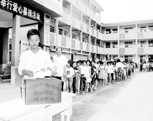 1180名留守儿童挤出自己的零花钱和老师一起,为四(2)班身患白血病的同学付雨露捐款两万多元!同是留守儿童、同出贫困家庭、同心相依相偎,这种感情凝聚成炽热的爱流迸发,温暖了豫皖两省郸城、鹿邑、亳州三县交界处。这股热烈的、纯洁的、无瑕的爱流还在漫延,流到你身边,浸润了你的心灵,不是吗?