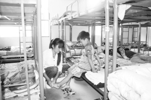 赵彩芳说:“回到寝室,我就是这29个孩子的妈妈。我的床就在寝室门口,我每夜至少要起3次床为孩子们盖被子。因为孩子们怕黑,我还要随时起床陪孩子们一起去卫生间。每天早上5点半准时叫孩子们起床。他们上学后,我就开始给孩子们洗衣服和床单。”为了让留守儿童感受母爱,该校特意把生活老师都聘为女性,有母爱陪伴,孩子们总能甜蜜入梦。